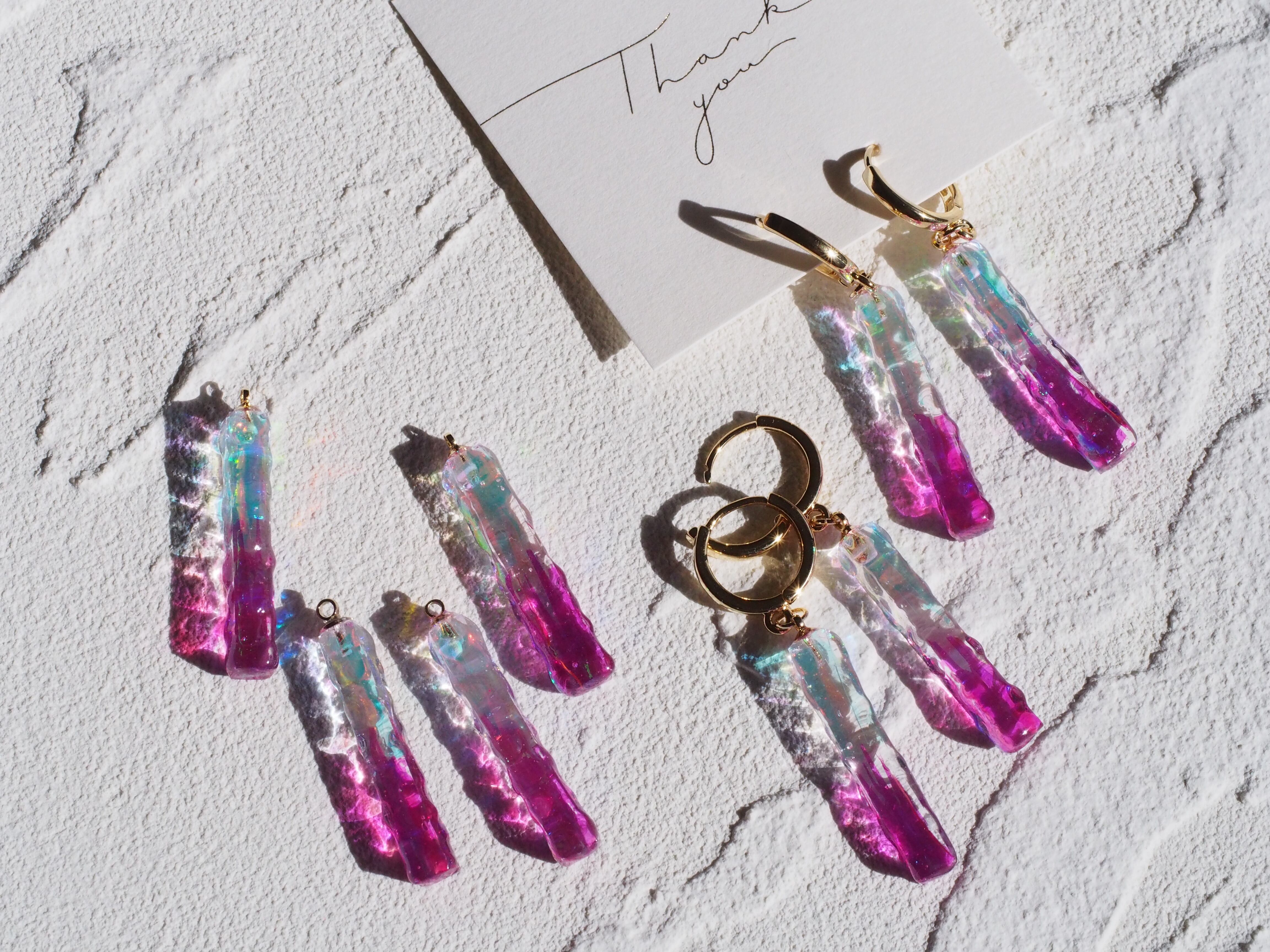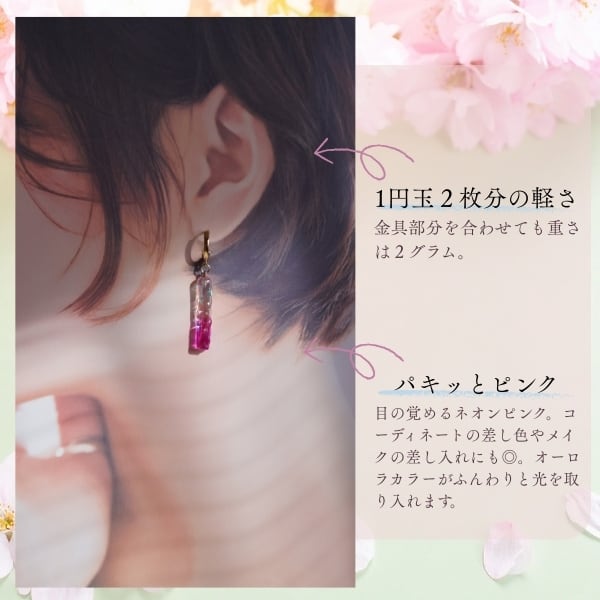 オーロラネオンピンクのスティックピアス・イヤリング
