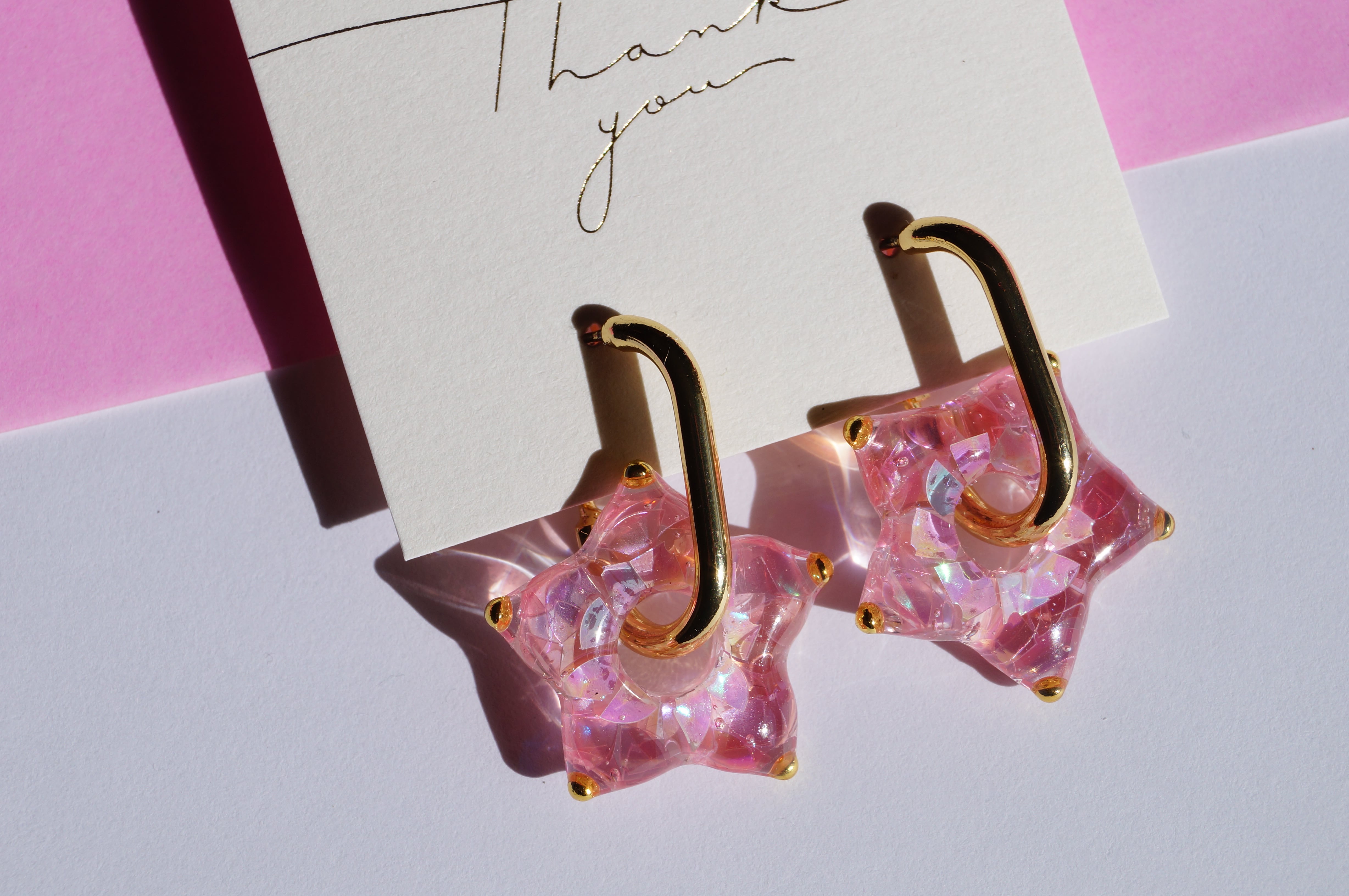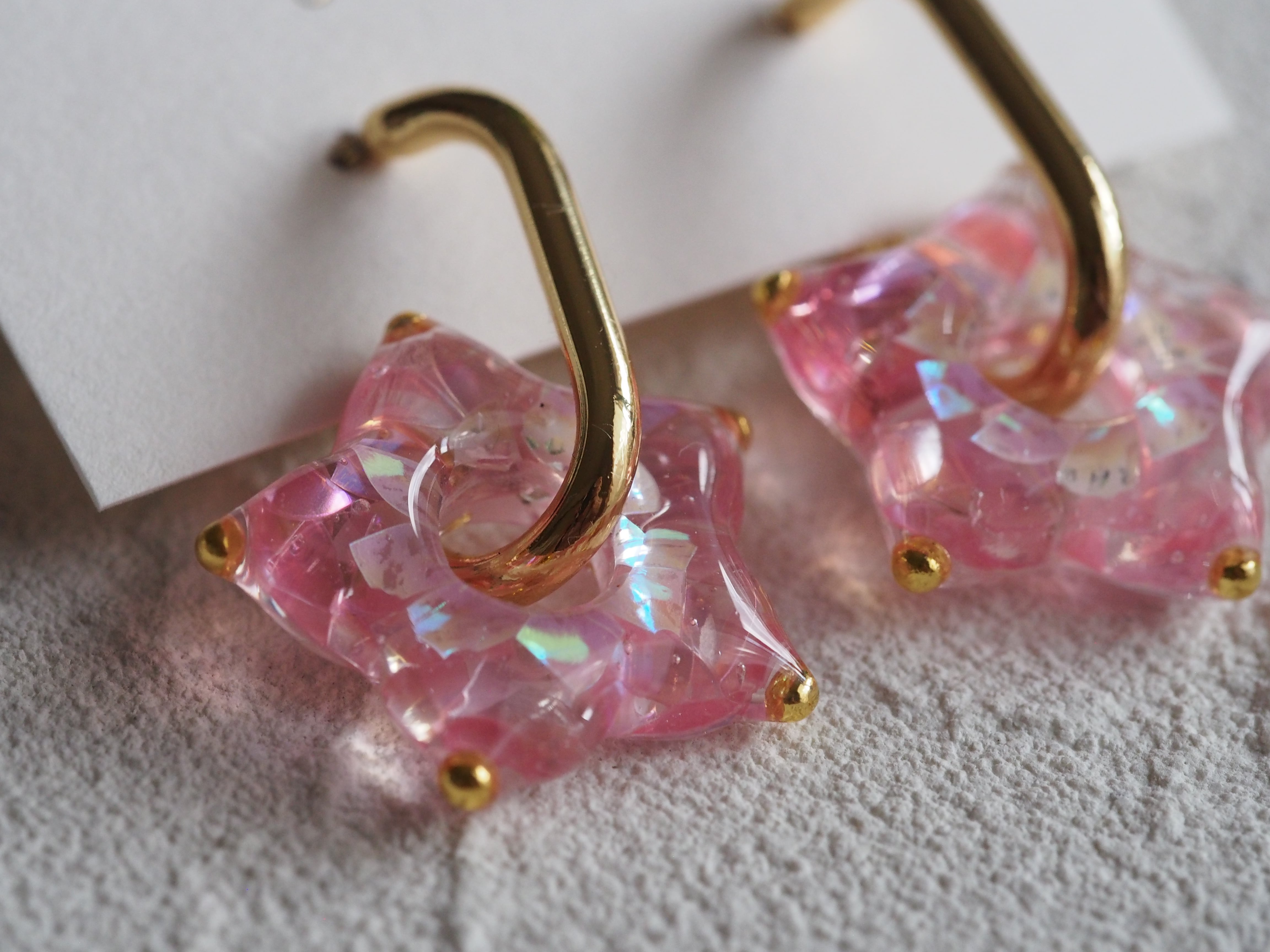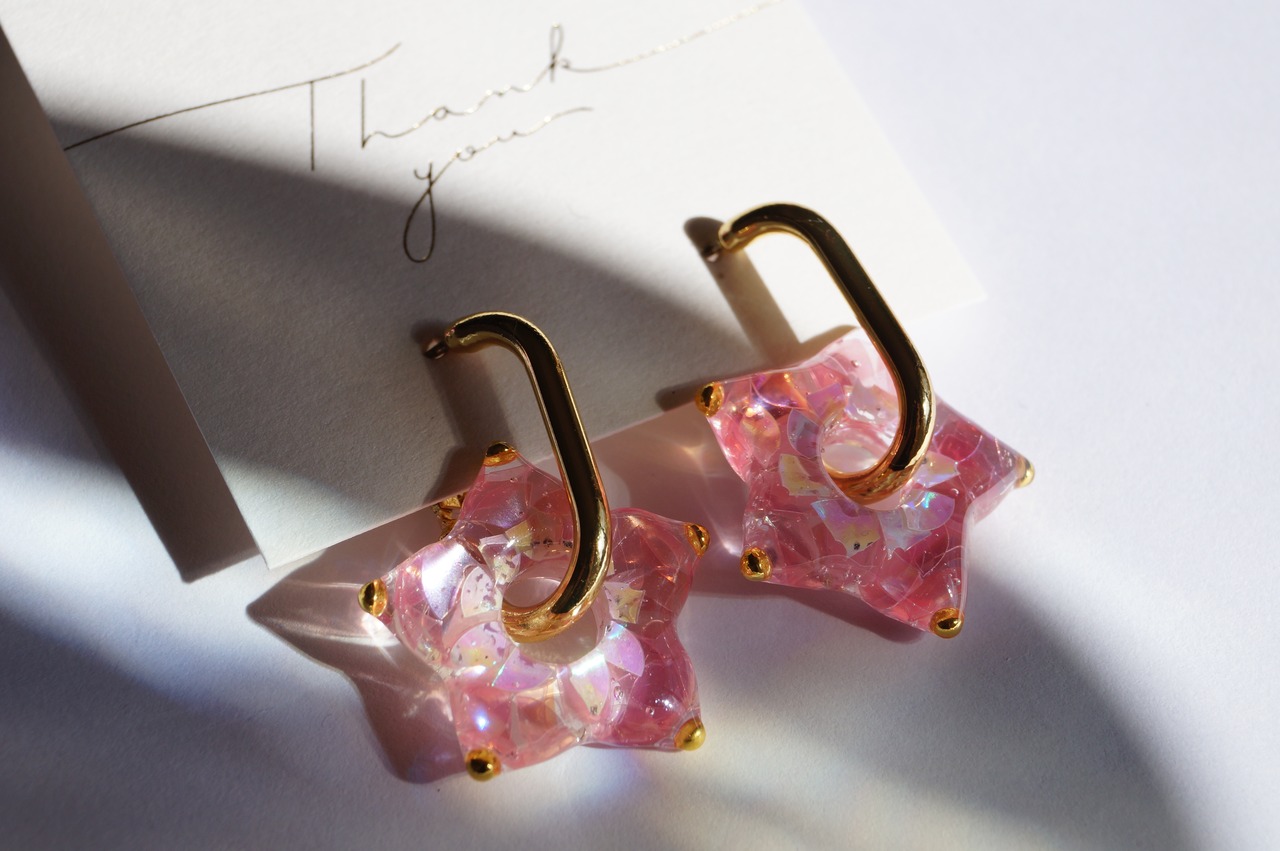 桜色の光の欠片をぎゅっと閉じ込めた期間限定の桜カラースターピアス・イヤリングです。
