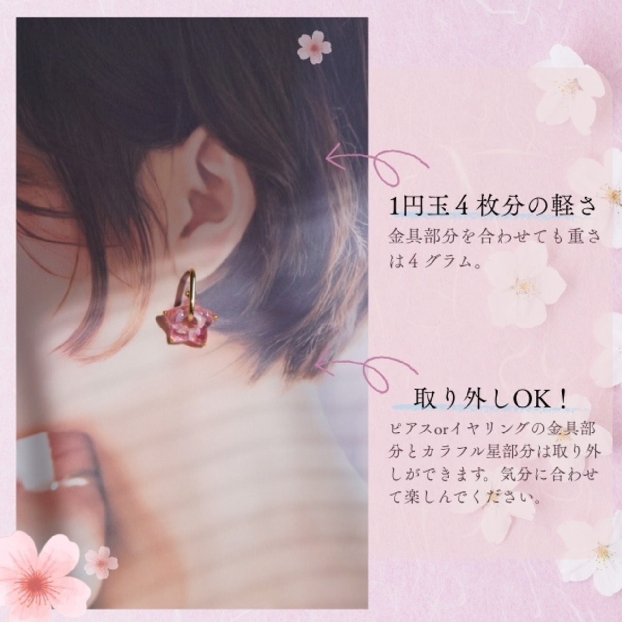 【春までの限定カラー】桜スターピアス・イヤリング