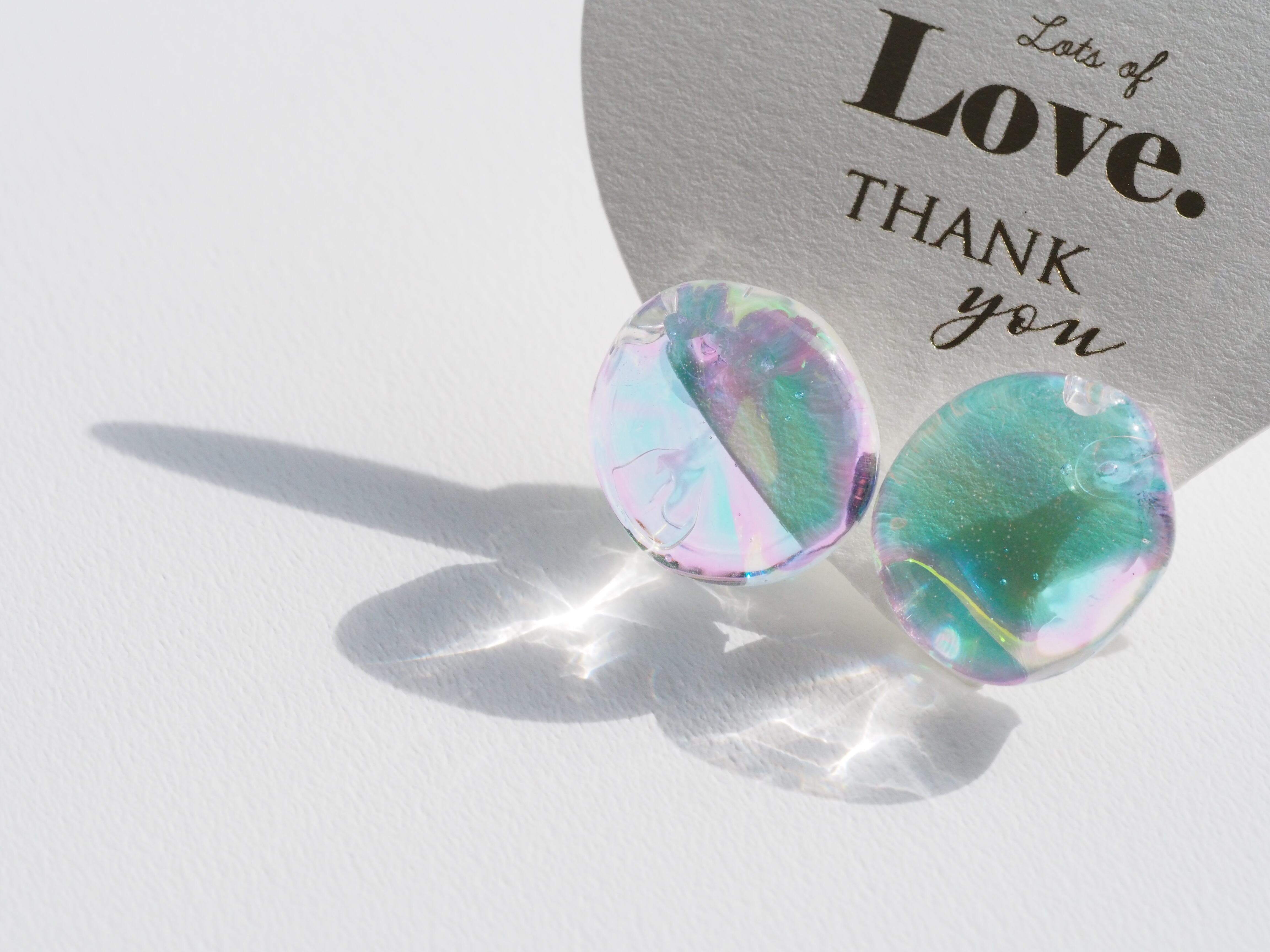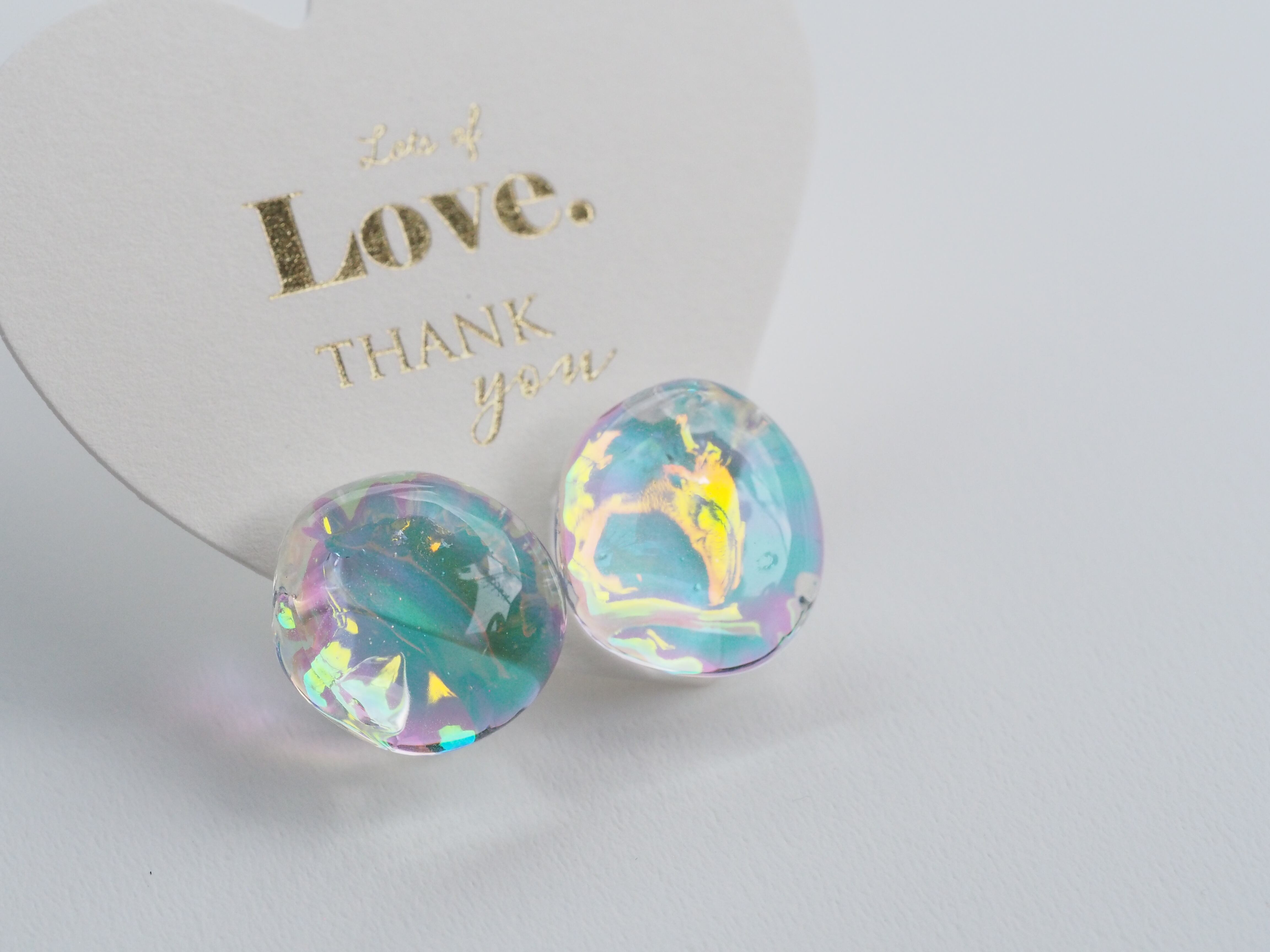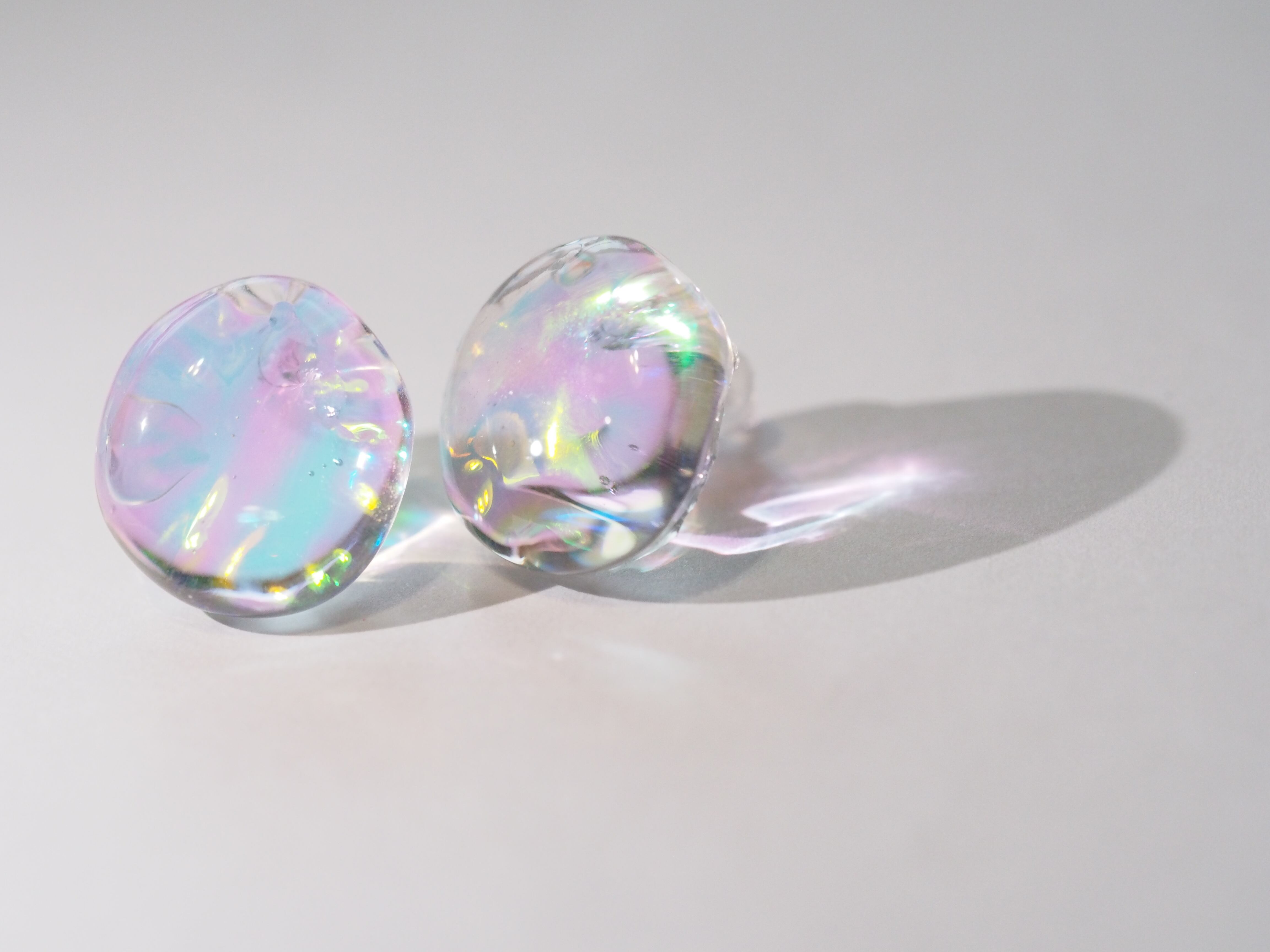 人気シリーズの小石シリーズに透明感バツグンのオーロラカラーが仲間入りです!角度によって様々な輝き方を魅せ同じ表情は1つとしてありません。シンプルなコーデにもぴったり。